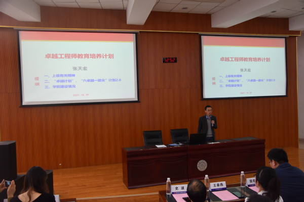 典礼伊始,张天宏对入选卓越工程师班的学生表示祝贺,并指出学院对于“卓越计划”培养工作的重视,展示近年来“卓越计划”培养所取得的成绩,希望通过“卓越计划”为国家输送更多优秀的人才,助力国家人才强国战略。他结合教育部“六卓越一拔尖”计划2.0指出,“卓越计划”就是要通过改革创新,培养具有创新意识、实践能力、进取精神、服务中华民族伟大复兴的社会主义建设者和接班人。最后,张天宏对所有在场的学生提出了殷切希望,希望同学们通过卓越班的学习和生活,能够提升自己高尚的道德情操、坚实的理论基础、创新的科学思维、踏实的实干精神,成为合格的卓越工程师!