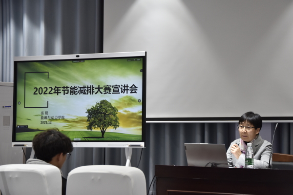 岳晨老师从竞赛背景、时间安排、项目选择、优秀项目赏析等四个方面向同学们全方位介绍了节能减排大赛,鼓励同学们组建队伍、找到兴趣点,结合身边事、现有研究项目等方面入手,选择合适的项目选题、创造性地开展研究,也鼓励大家主动寻求老师们的专业指导,有明确的队伍分工,主动学习、坚持到底。
