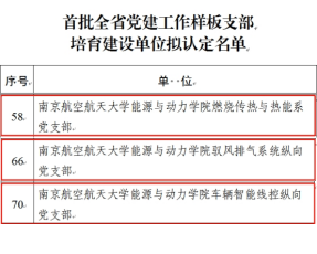 近日,省教育厅公布新时代江苏高校三级党组织“强基创优”建设计划首批遴选结果,学院燃烧传热与热能系党支部、驭风排气系统纵向党支部、车辆智能线控纵向党支部等3个党支部成功入选首批全省党建工作样板支部培育建设单位,实现学院基层党建工作新突破。