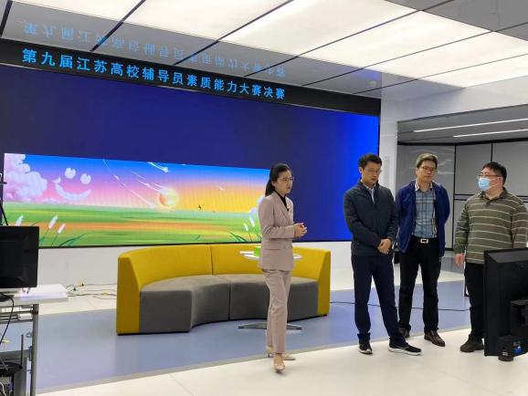 第九届江苏高校辅导员素质能力大赛决赛聚焦辅导员理论水平、职业能力和专业素养,设置了基础知识测试、案例研讨和谈心谈话三个比赛项目。此前,陈华华在校学生处、学院和学校历届辅导员素质能力大赛获奖者的精心指导下,经过近一个月的认真备赛,凭借扎实的理论功底和良好的综合素质,得到了专家评委和兄弟高校的高度肯定,以第一名的成绩通过基地复赛晋级省赛,展现了学校辅导员的良好风采。