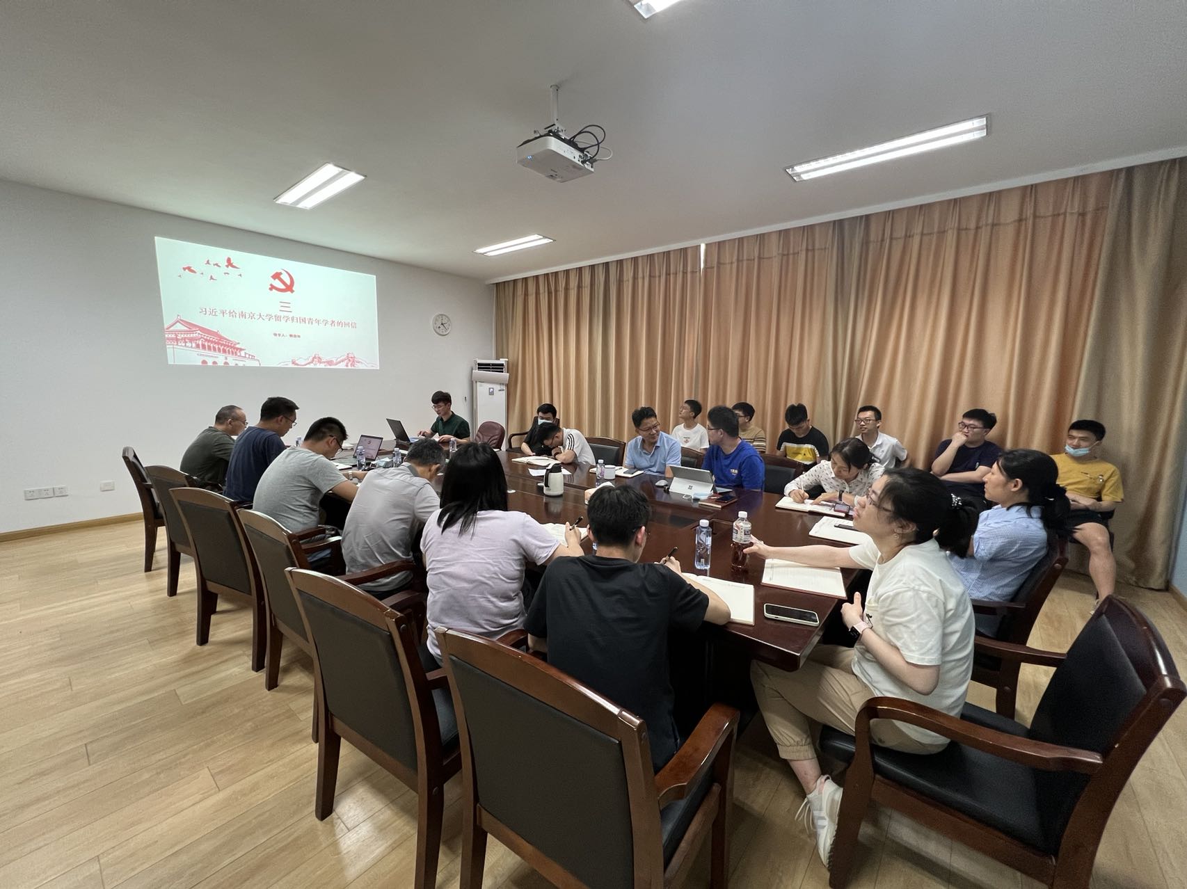 随后,学生党支部书记赖劲如从青年学生的视角领学《习近平总书记给南京大学留学归国青年学者的回信》,强调青年学生要以爱国为底色,胸怀负笈求学、拳拳报国的大志,笃定国之所需、吾之所向的坚定信念。