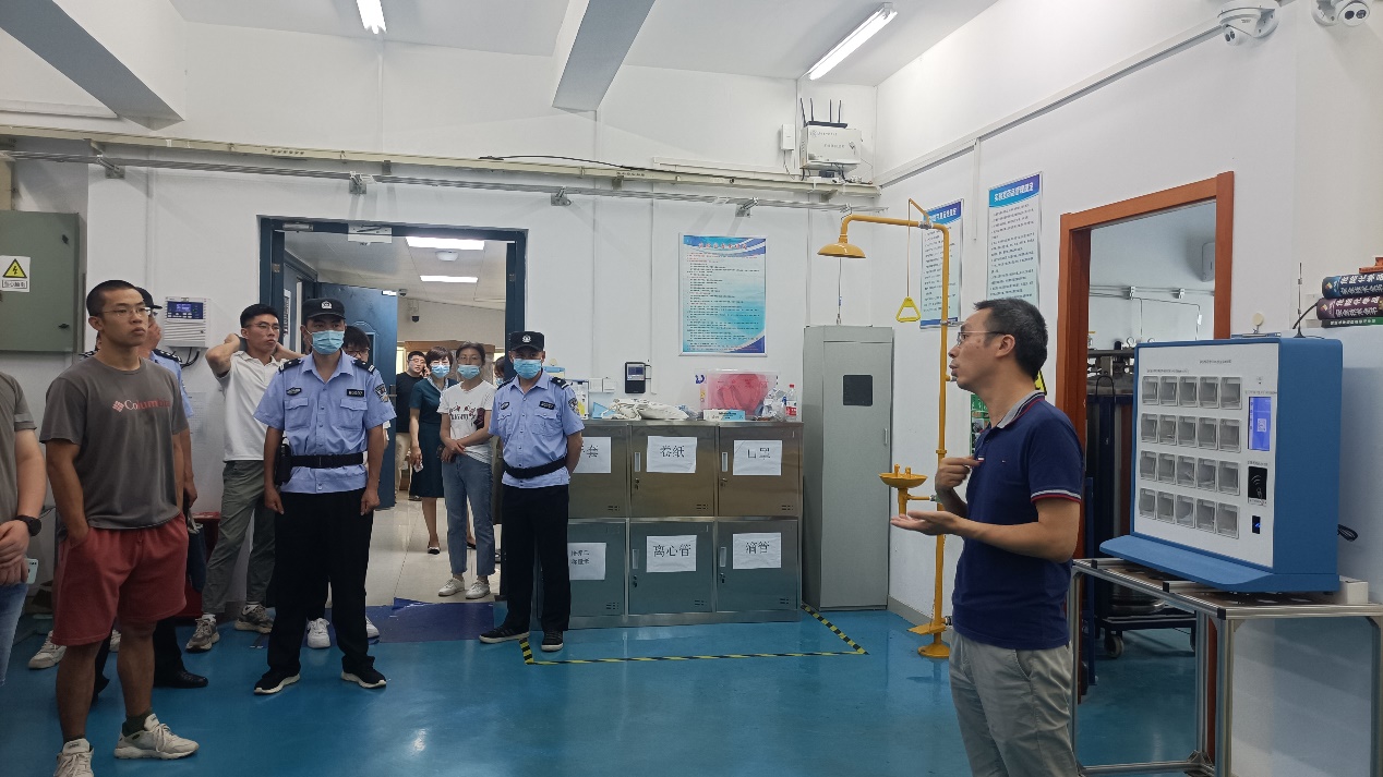 本次演练由国有资产管理处副处长阎志军主持,瑞金路派出所警官张详生莅临指导,相关职能部门工作人员、涉及危险化学品使用的其他学院师生一同参加了演练。技安科科长赵端正致开幕辞,介绍了演练的流程和意义,希望通过本次演练加强与公安秦淮分局的“校地协同互动平台”建设,深化我校实验室安全红线意识,防范各类实验室安全风险。