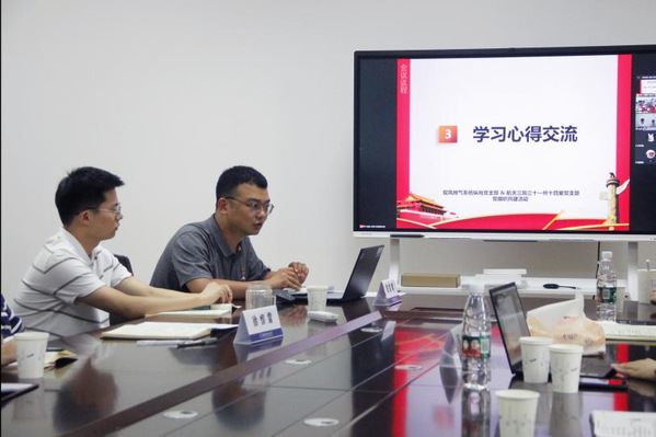 14室支部成员马力、驭风排气系统党支部书记黄帅分别介绍了各自支部工作的进展情况、建设目标与进度。双方支部成员交流了学习感悟与心得,大家纷纷表示,在何畏教授的党课中收获良多,对自身的理论学习与科研工作有了更深的认识。