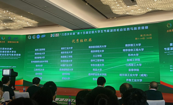 8月5日,第十五届全国大学生节能减排社会实践与科技竞赛在天津大学落下帷幕,我校推荐的15个参赛作品共斩获全国一等奖2项、三等奖7项,并获优秀组织奖,首次有社会实践调研报告获得全国奖项。