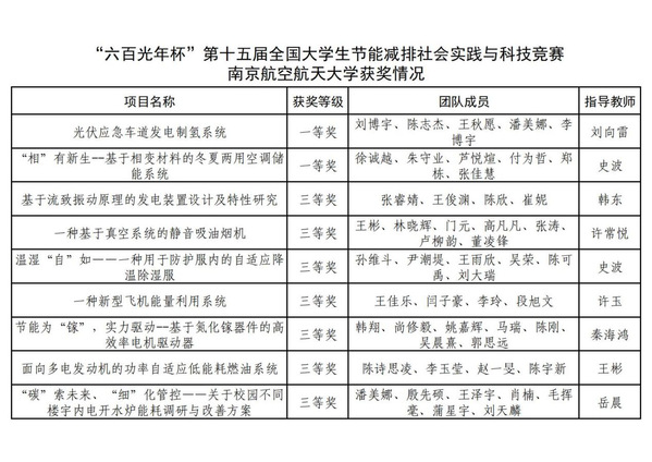 我校的节能减排参赛工作在教务处、学工部、研工部、校团委的指导下,由tyc7111cc太阳成集团牵头,参赛团队积极备赛,从校赛选拔到全国决赛历时10个月,南航学子以优秀的科创作品在全国决赛的舞台上展现南航风采,为校争光。