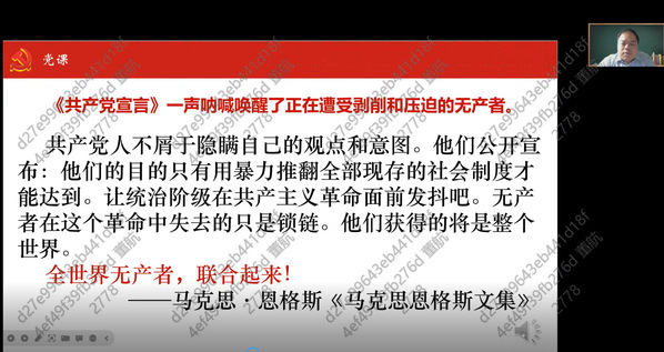 校学生资助管理中心主任唐志文从共产党的名称起源讲起,回顾了共产党的发展历程,讲述了《共产党宣言》的内容组成,从共产党人的观点、目的和意图等方面剖析了《共产党宣言》的历史意义与当代价值,号召学员们一同为共产主义事业奋斗。