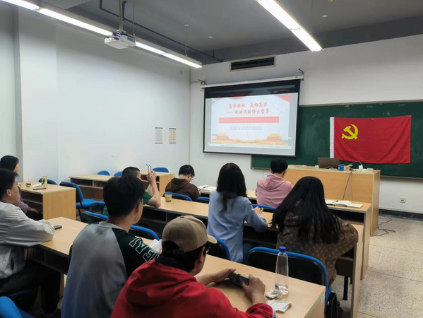 北京航空航天大学习近平新时代中国特色社会主义思想研究生宣讲团张智,主讲高举旗帜,走向复兴——新时代的伟大变革专题党课。张智四个方面和三件大事分别回顾了极不寻常、极不平凡的五年和新时代十年伟大变革,深入阐释论证了必须坚持中国共产党的领导,高举中国特色社会主义伟大旗帜,继续把中国特色社会主义这篇大文章写好。