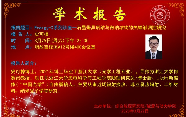 Energy-X系列讲座—石墨烯异质结与微纳结构的热辐射调控研究