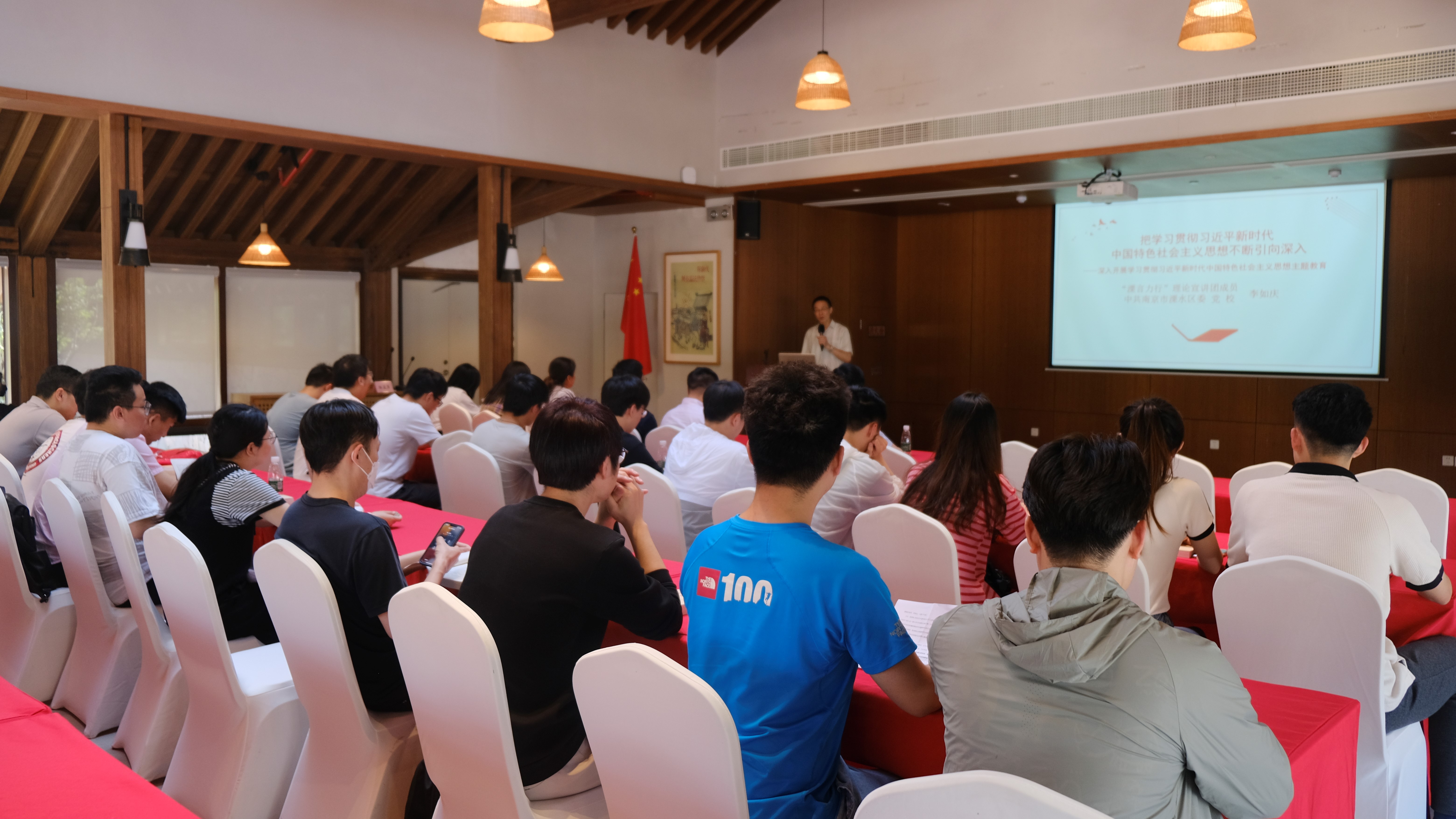 活动中,溧水区委党校老师李如庆为全体党员讲授《把学习贯彻习近平新时代中国特色社会主义思想不断引向深入》主题党课。他从开展主题教育的时代背景、目的意义及内容要求三个方面,指出一个民族要走在时代前列,就一刻不能没有理论思维,一刻不能没有正确思想指引。李如庆强调坚持以科学理论引领、用科学理论武装,是马克思主义政党永葆先进性纯洁性的根本保证,也是我们党的政治优势。