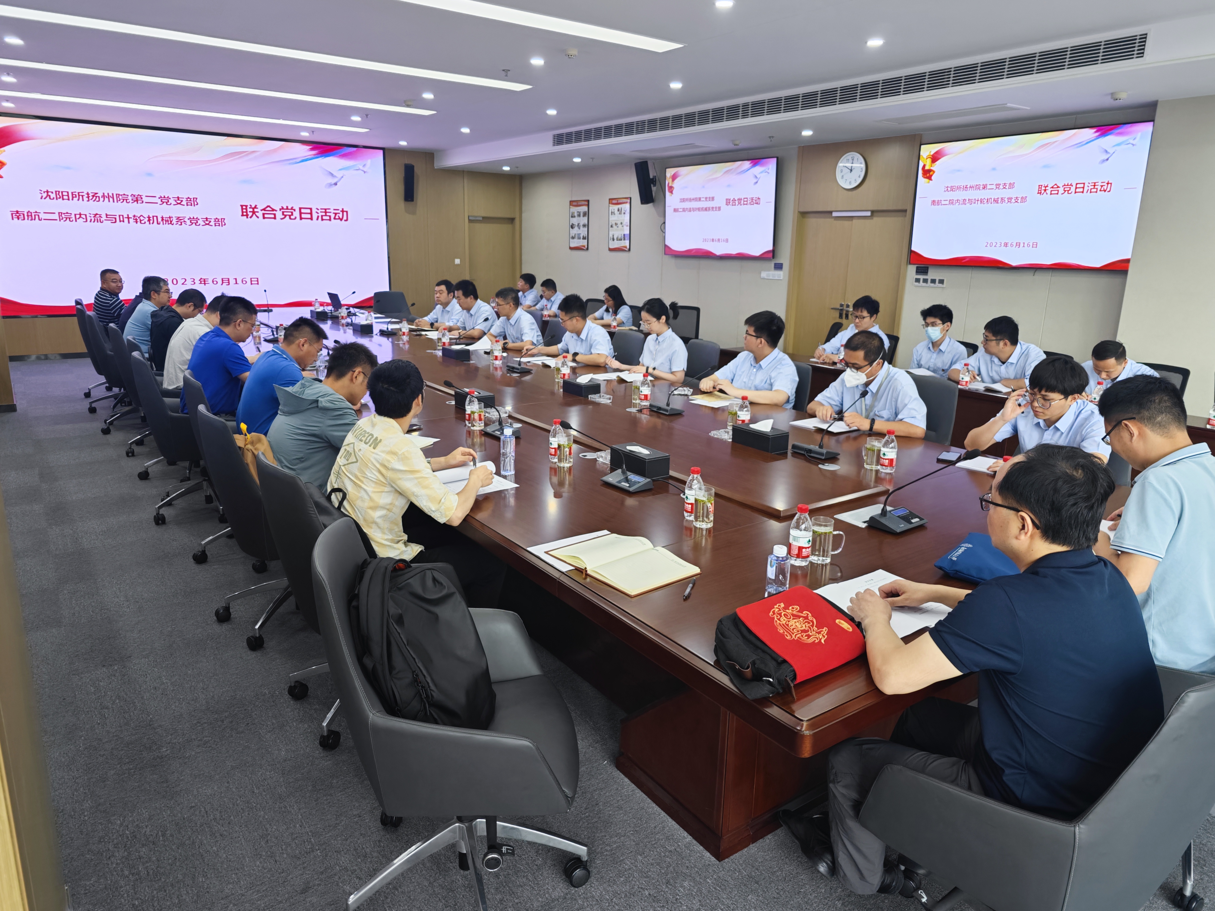 6月16日,学院内流与叶轮机械系党支部与沈阳飞机设计研究所扬州协同创新研究院(以下简称“扬州院”)第二党支部联合开展主题党日活动,主题是“深入开展主题教育,聚力推进飞发一体化创新设计”。