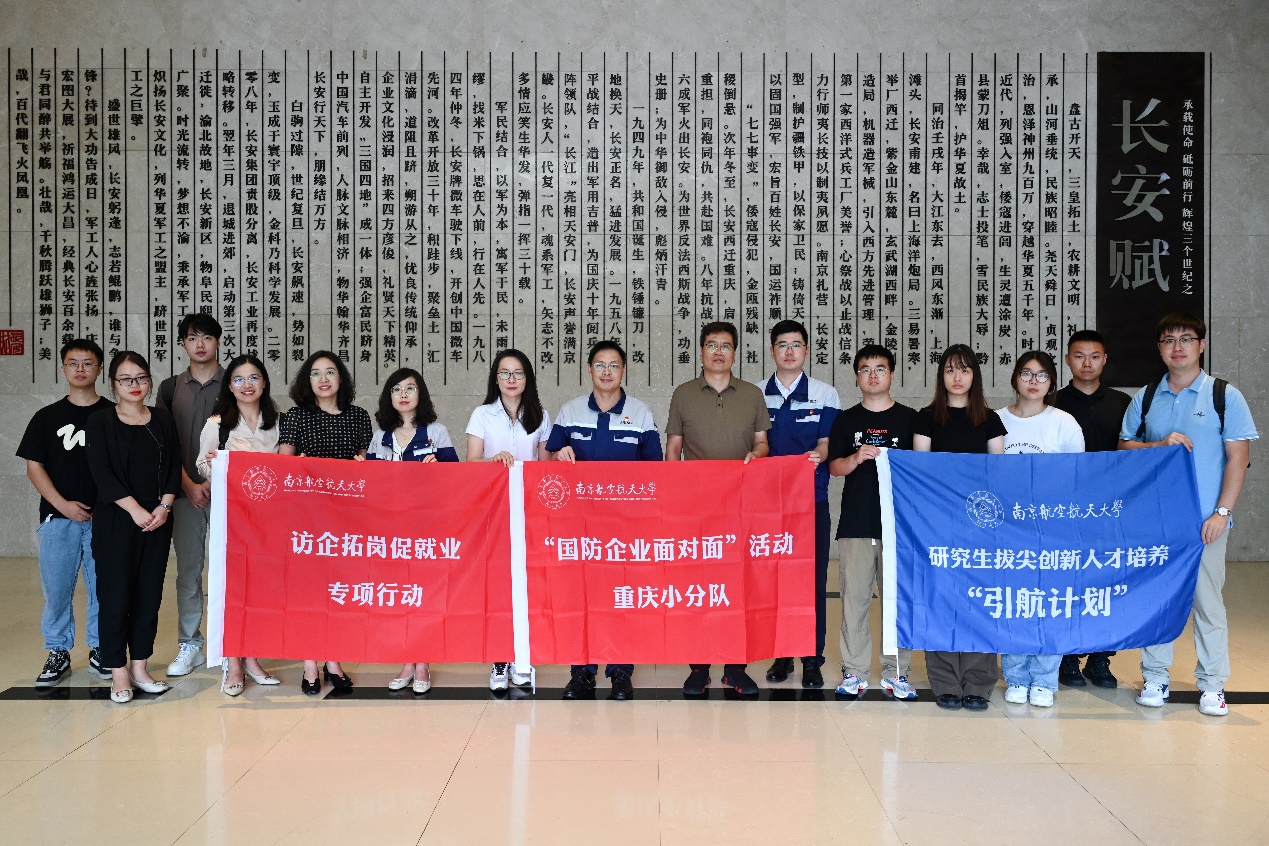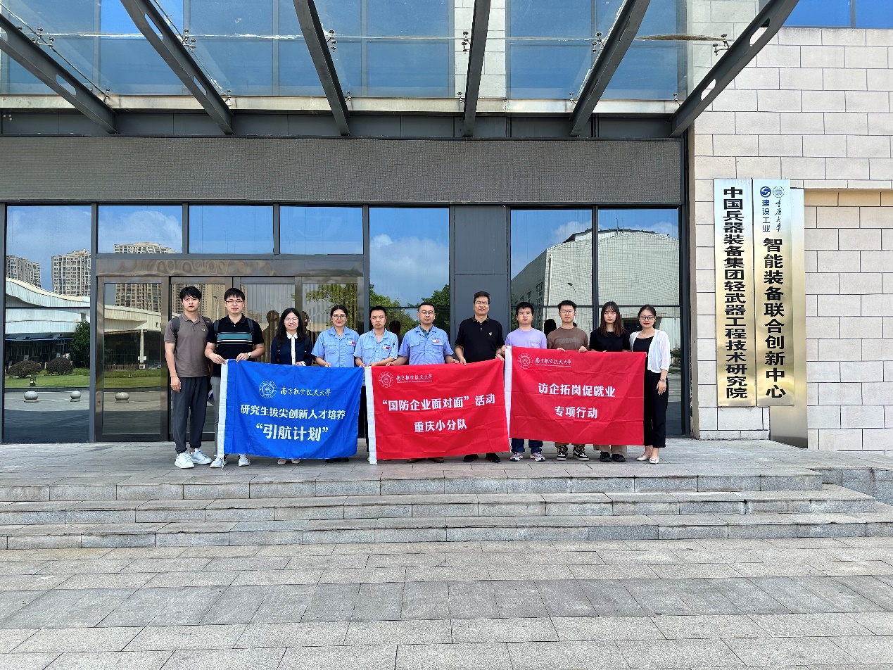 为进一步推动学习贯彻习近平新时代中国特色社会主义思想主题教育走深走实,落实好教育部和江苏省教育厅“访企拓岗促就业”专项行动通知要求,扎实做好大兴调查研究和党建共建,拓展、拓宽、拓深就业岗位,7月20日至7月23日,tyc7111cc太阳成集团、马克思主义学院和人文与社会科学学院师生一行12人赴重庆五家单位开展访企拓岗促就业专项行动暨“国防企业面对面”活动,学院党委副书记樊小杰、马克思主义学院党委副书记阙愚、人文与社会科学学院党委副书记刘思辰、辅导员和硕博学生代表参加调研。