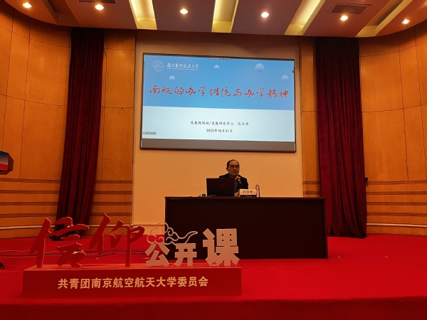 校发展研究中心主任、发展规划处副处长孔令华以《南航的办学传统与办学精神》为题作报告。从南航的办学类型与规模、办学历史与成就、发展思路与战略、办学文化与精神几个方面对南航的办学传统和办学精神进行了深入的剖析和阐述,勉励同学们不忘初心牢记使命,以南航的办学传统和办学精神为指引,坚定航空报国志向,为南航的发展贡献力量。