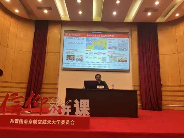 学校党员发展培训师资库教师、无人机研究院副书记、副院长杨波以《〈共产党宣言〉前世今生》为题作报告。从《共产党宣言》的取名、诞生、内容、关键词和力量,全面介绍了《共产党宣言》的前世今生,带领同学们在历史中感悟马克思主义的诞生对全世界的无产阶级革命运动起到的推动作用,感悟《共产党宣言》在百年之后依然在影响中国、推动中国的发展。
