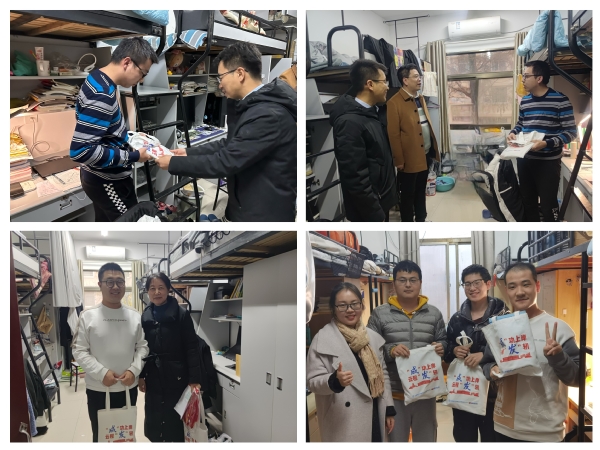 寒冬将至,2024年考研进入了最后冲刺阶段。为鼓舞考研学子士气,增强考研信心,缓解考研压力,学院开展“筑梦研途”之“研途送温暖”活动。12月11日下午,学院党委书记徐川、院党委副书记樊小杰、班主任代表李秋红、2020级辅导员和学院本20级第一党支部、第二党支部党员志愿者走进学生宿舍,为180余名考研学生送去助考礼包与祝福。