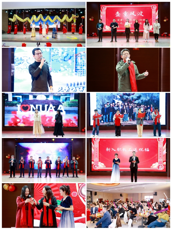 联欢会分为“能文能武”“源远流长”“舞动翔龙”“蓄力启航”四个篇章,来自各系、机关和学工的教职工代表表演了精彩的节目。辅导员们和名字中带有“long”读音的老师表演的节目《飞龙在天》,集合了歌唱、舞龙和打鼓等多种表演形式,将现场的气氛瞬间点燃,歌词字里行间体现了对学院的挚爱与祝福。学院机关教职工带来的配音表演《查重风波》,用诙谐生动的语言展现实际工作中的趣事。车辆工程系王源隆的独唱《青花瓷》,将中国风演绎的淋漓尽致,描绘了一幅烟雨朦胧的江南风景。强度与振动工程系漆文凯表演的歌曲《把根留住》充满着深情和思考,展现了对生活的热爱与珍惜。学院机关李郡、陈昱洁带来的中英文歌曲串烧如春风拂面,温暖人心。控制工程系庞淑伟、汪勇、周鑫、孙芹芹带来的朗诵《沁园春》,表达了对一代伟人毛泽东的崇高敬意和深切缅怀。由宋迎东副校长、学院领导班子成员和在学院工作过的领导带来的合唱《爱拼才会赢》带领大家回忆峥嵘岁月、凝聚奋进力量,将整场联欢会的气氛推向高潮。各个篇章配以妙趣横生的抽奖和游戏环节,整场联欢会气氛活跃热烈,现场掌声阵阵,欢声笑语不断。