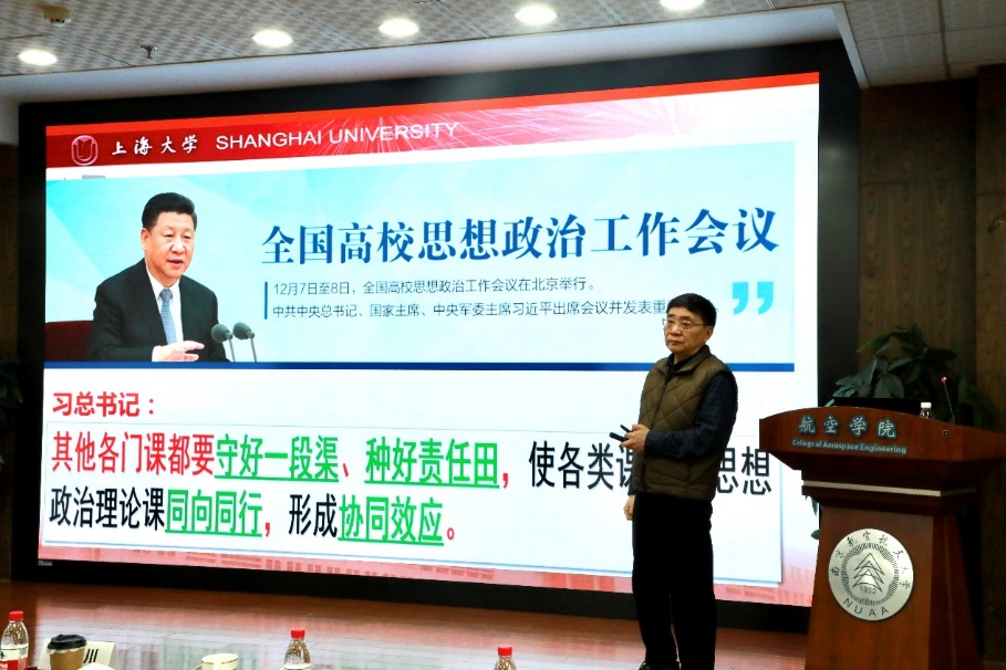 3月14日上午,学院党委与航空学院党委在明故宫校区18号楼529报告厅联合举办教职工党员“开学第一课”,特别邀请了上海大学原副校长叶志明教授作辅导报告,报告的主题是“言传身教、教书育人—党员先锋作用之课程实践逻辑”。双方学院教工党支部书记、支部党员教师代表近90人参学。本次活动由tyc7111cc太阳成集团党委书记徐川教授主持。