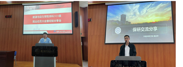 4月24日,学院在将军路校区2110教室举办“APU学支联盟”——“动力助推”就业动员大会暨经验分享会。此次活动由学院本科2021级辅导员张钦尧主持,邀请2020级飞行器动力工程专业王林、王超、张柘权,能源与动力工程专业原梓豪、戚梦瑶,车辆工程专业施志洋、张双分别就保研、考研和就业三个角度进行规划职业生涯、提升科创能力、塑造考研笔试能力和提高面试技巧等层面进行讲解。全体2021级本科生参与此次活动。