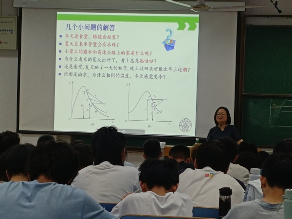 《工程热力学》是能源动力、航空航天、机械等相关专业的核心课程,湿空气是其重要的研究对象之一。通常,湿空气被视为干空气和水蒸气组成的理想混合气体,作为一种广泛存在的热机工质,掌握其热力学性质对于解释多种自然现象和解决工程实际问题具有重要意义。同时,湿空气也是该课程学习的一个难点。课堂上,张净玉从湿空气的概念和定义入手,结合普遍存在的自然现象,从提问到释疑,从理论到实际,深入阐述湿空气的性质,以及计算分析方法。最后通过航空发动机试车的工程案例进一步探讨空气湿度对实际热机中热功转化的影响。参加观摩的老师从张老师的课堂获益颇多。