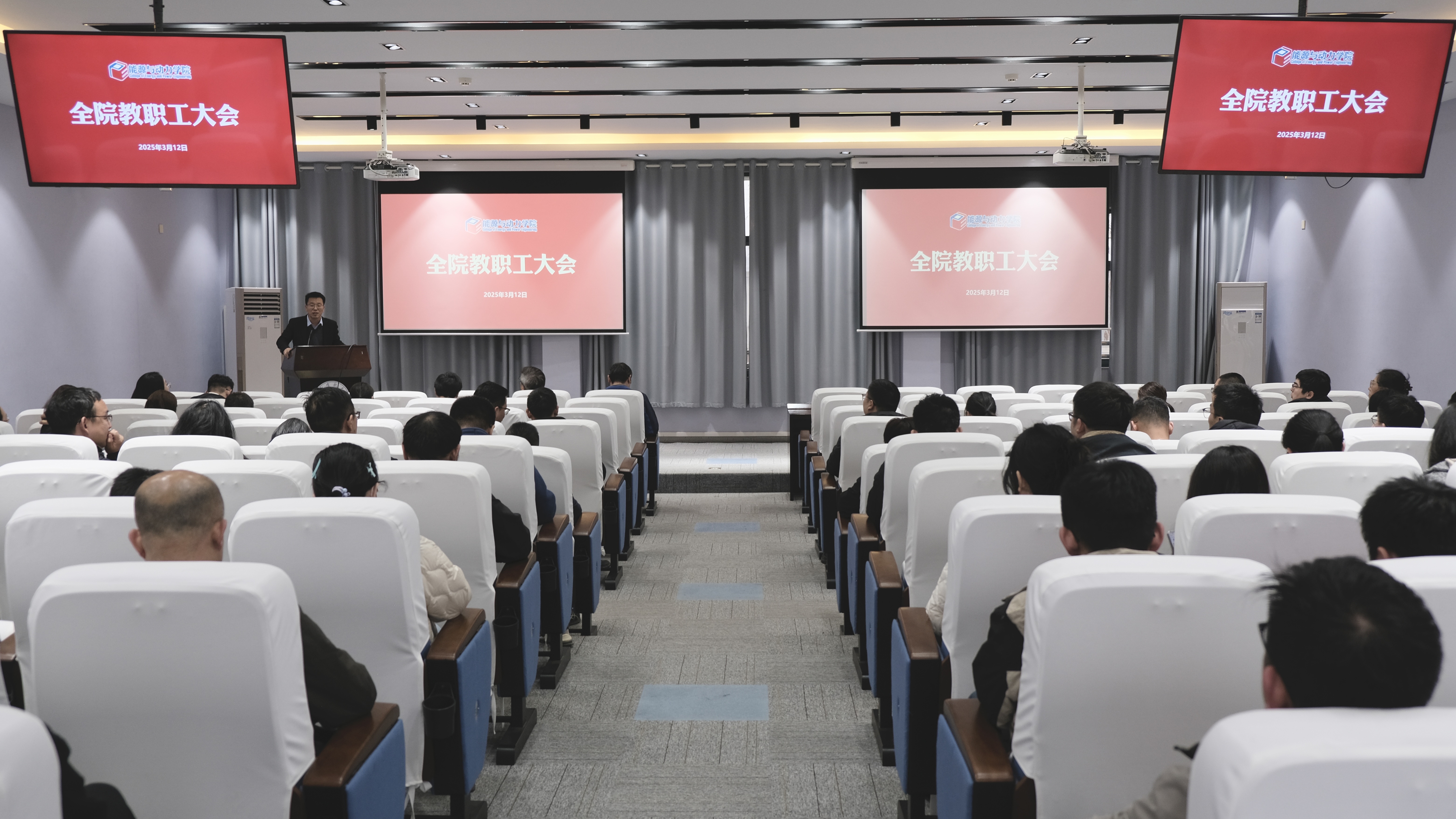 3月12日下午,学院在十号楼619报告厅召开2024-2025第二学期教职工大会,学院党委书记徐川主持会议并作工作汇报。会议深入学习贯彻学校干部教师大会精神,系统总结2024年工作成效,全面部署2025年重点任务,动员全院教职工凝心聚力、深化改革,奋力推进学院高质量发展。