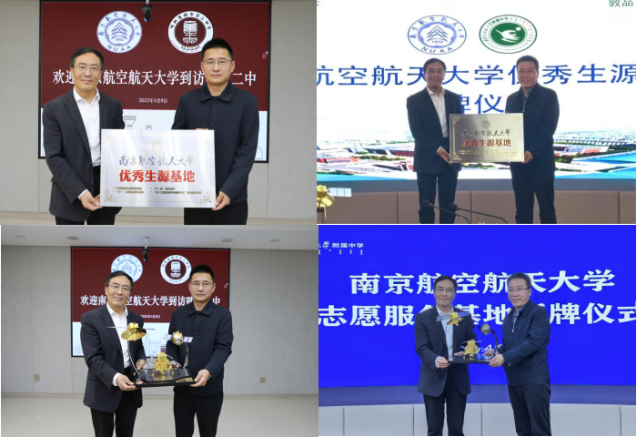 崔海涛代表南航向中学授予“优秀生源基地”称号并赠送嫦娥六号模型,标志着双方将共同探索“双高”联动新路径,共同开启“优秀生源基地”合作建设新篇章。