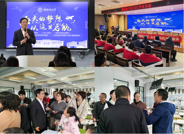 崔海涛为中学生及其家长带来航空航天科普讲座及招生宣传,介绍了南航在航空航天领域的学科特色、专业优势以及在空天事业作出的突出贡献,展现了南航人“为党育英才、为国铸重器”的使命担当,鼓励同学们积极投身国防事业,让同学们对南航的学术底蕴和报国情怀有了更深刻的认识。学生及其家长们认真聆听报告并积极回应,现场互动热情高涨。