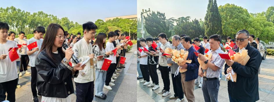 4月28日上午,正值“五一国际劳动节”来临之际,学院在明故宫国旗广场举行“劳动铸就梦想 平凡铸就非凡”升旗仪式暨五一国际劳动节主题团日活动。学院退休教师毛建国、翁建生、陈毅华、俞洪敏,南京市五一劳动奖章获得者、南航厨艺课堂西式点心讲师于洋,明故宫校区B7栋宿管阿姨董婷婷,辅导员张钦尧、王一珩与本科2021级全体团员共同参加。活动由王一珩主持。