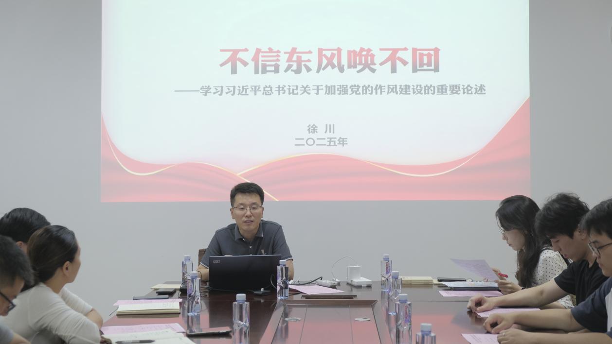 会议邀请了学院党委书记徐川教授作题为《不信东风唤不回》的专题报告。报告系统梳理了习近平总书记关于加强党的作风建设的重要论述,徐川谈到党的作风建设关乎人心向背,事关党和国家事业成败,作为一名合格党员要深刻认识到作风问题根本上是党性问题,要持续深化纠治“四风”,将正风肃纪反腐三者结合在一起来抓,用纪律筑牢党员拒腐防变底线,标本兼治,完善好相关制度,推进作风建设常态化长效化。