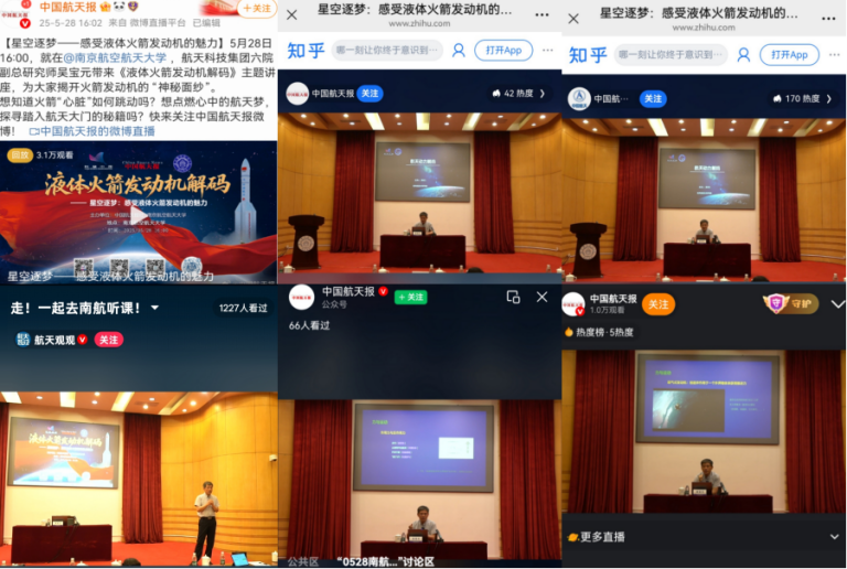 活动还通过科普中国APP、科普中国公众号、航天报公众号和航天观观直播同步放送,线上累计观看人数四万余人次,线上线下联动,学界反响热烈。
