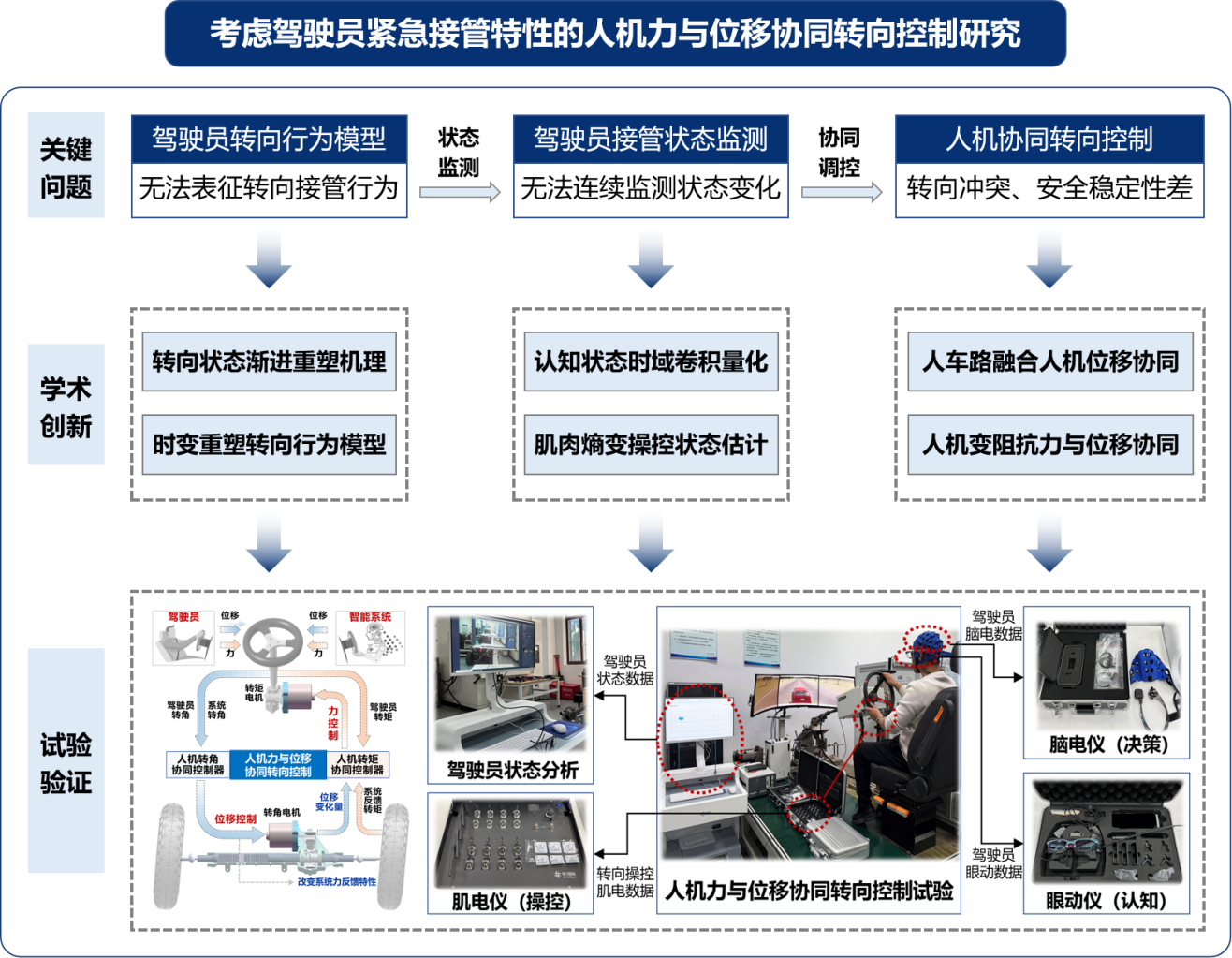 智能汽车是未来交通战略发展方向,在减少交通事故、提高安全性等方面具有显著优势。随着自动驾驶技术的不断提升,L3级智能汽车逐步进入量产阶段。然而,L3阶段智能汽车难以处理所有工况,在特定紧急情况下仍需驾驶员接管控制。接管期间人机共享车辆转向控制,但因驾驶员转向状态动态恢复的强时变特性,人机协同转向接管过程面临安全稳定性差、转向冲突频发等问题,现已成为制约我国智能汽车产业发展的核心难题。因此,亟需面向紧急接管场景开展人机协同转向控制研究,以提升L3级智能汽车安全稳定性,助力我国汽车产业高质量发展。
