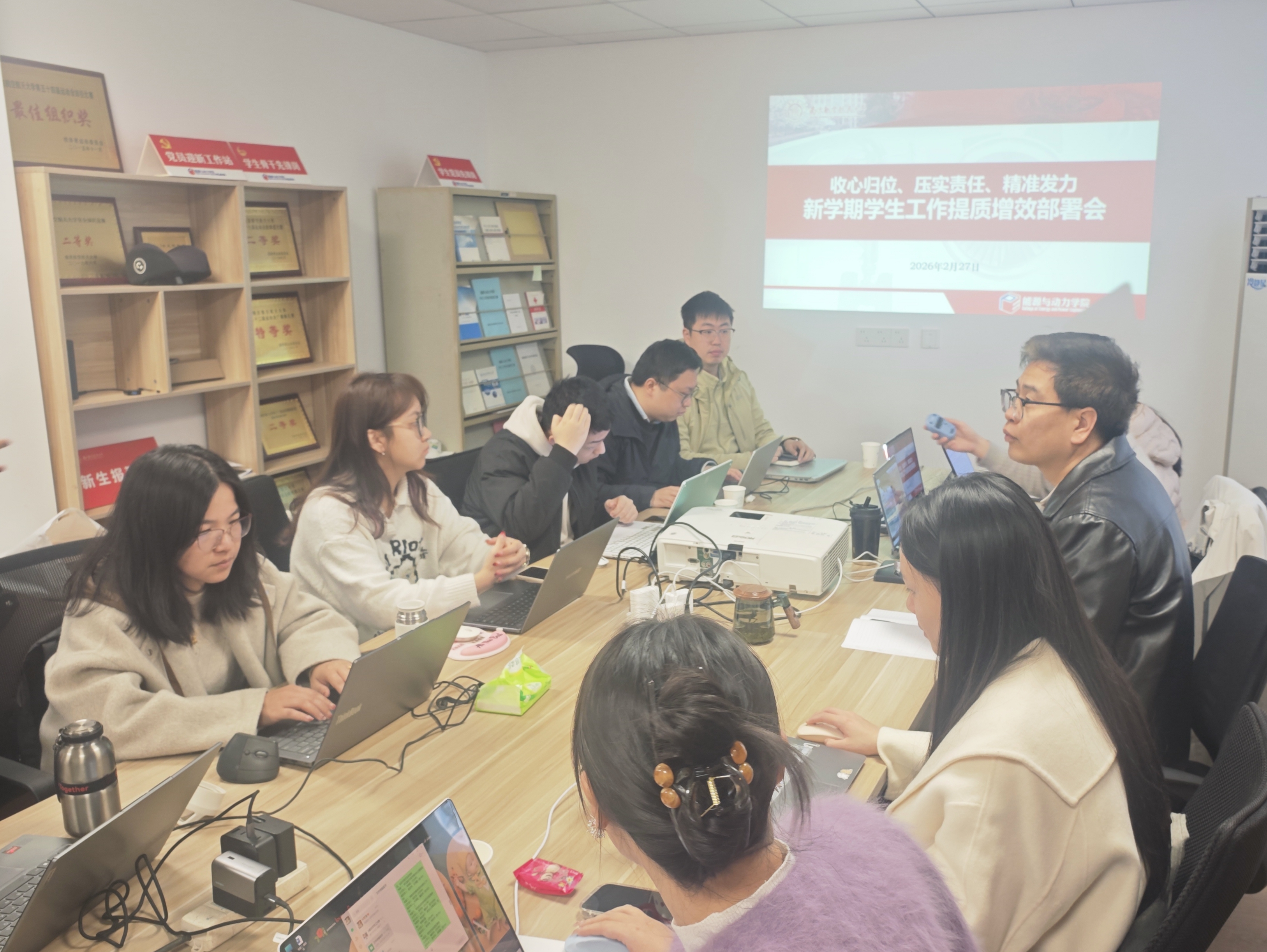 樊小杰在总结讲话中对本次务实会给予充分肯定。他强调,新学期学工队伍要切实做到:一要“收心归位”,迅速调整工作状态,以饱满热情投入各项工作,确保“人到岗、心到位”,以良好精神面貌开启新征程;二要“压实责任”,立足岗位职责,把各项任务细化分解、落到实处,践行“功成不必在我”的奉献精神和“功成必定有我”的责任担当;三要“精准发力”,坚持问题导向,聚焦学风建设、困难学生帮扶、科创竞赛、就业工作等重点领域,精准破解工作难题,不断提升学生工作质量和水平;四要“强化协同”,完善家校协同、师生协同、各岗位协同机制,依托“四全育人”理念,为学院高质量发展和学生成长成才保驾护航。