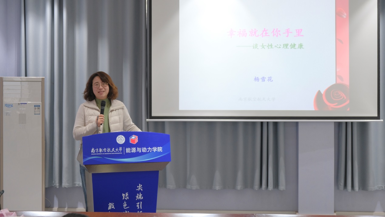讲座伊始,许静代表学院对杨雪花的到来表示热烈欢迎,并向在场全体女同胞致以节日的诚挚问候与美好祝愿。她表示,学院始终关心关爱女教职工和女学生的成长与发展,希望通过此次讲座,帮助大家更好地关注内心世界,提升幸福感。