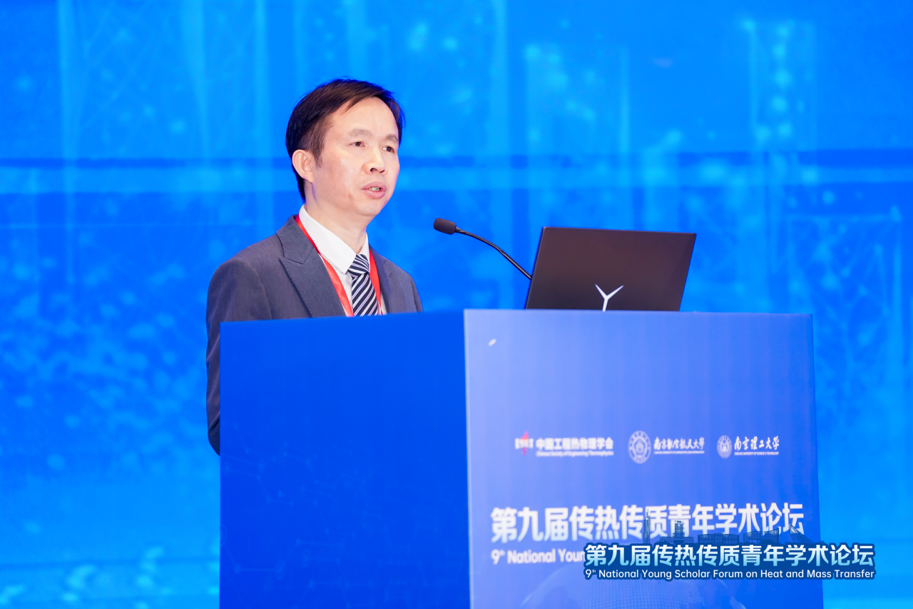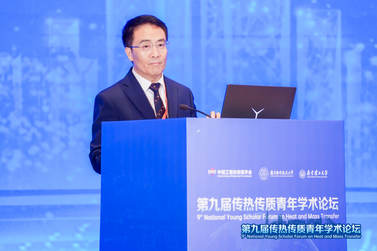 崔海涛代表承办单位致辞。他介绍了太阳成tyc7111cc在航空宇航、工程热物理与传热传质领域的学科积淀与创新成果,强调学校始终以 “科技报国” 为理念,将传热传质学科作为重点建设方向。作为承办单位,南航将全力做好服务保障,以论坛为纽带,深化与全国同仁的交流合作,共同培育优秀青年人才,为能源绿色低碳转型与科技自立自强提供坚实支撑。