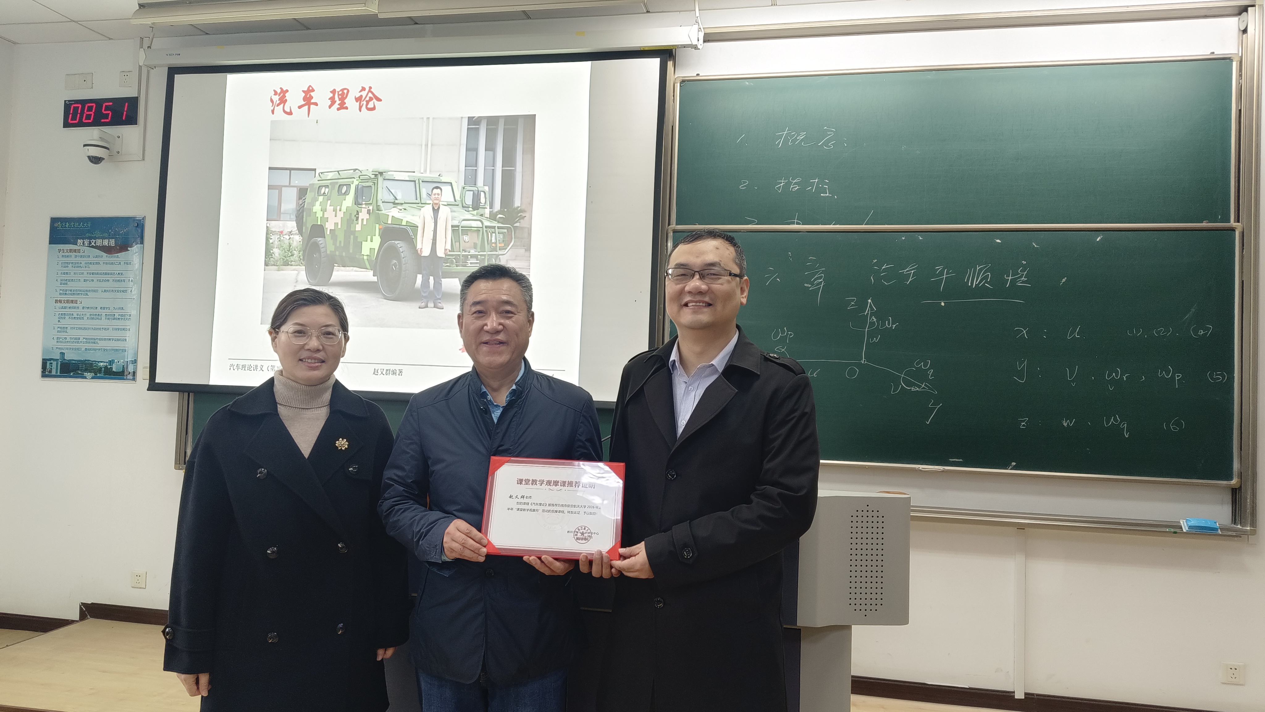 课程结束,学院副院长张悦和教发中心杨兰芳老师为车辆工程系赵又群教授颁发观摩课程证书。