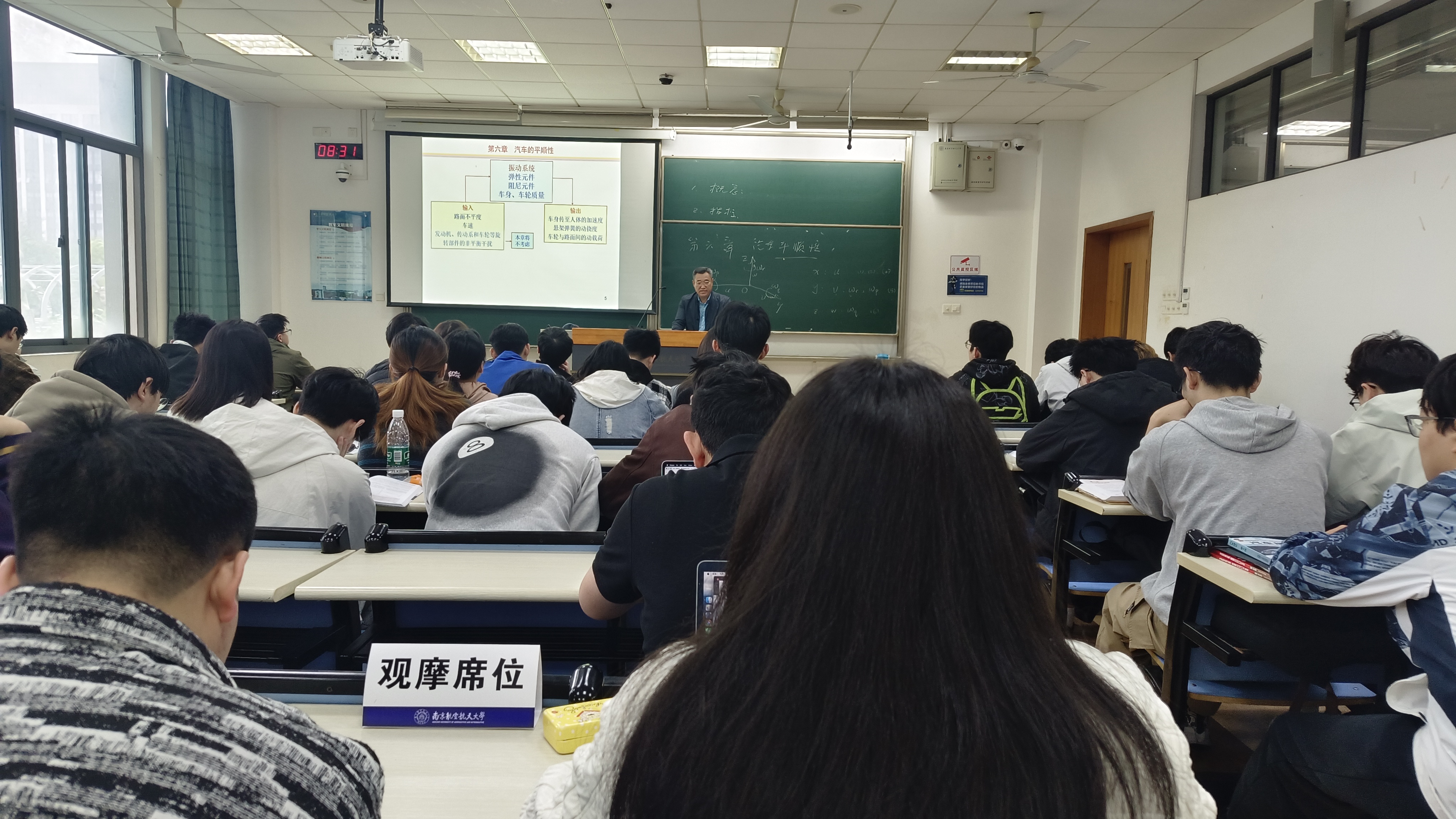 4月22日上午,学院联合教师发展中心组织来自全校各学院的33名教师观摩车辆工程系教授赵又群主讲的《汽车理论》课程。